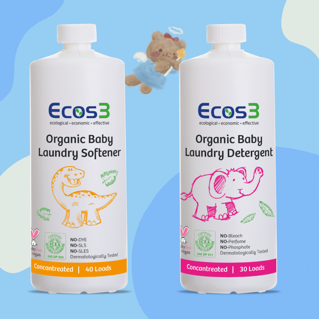 Das ECOS3 Bio Baby Waschpflege Set ist die bevorzugte Wahl neuer Eltern und umweltbewusster Familien! Dieses Set besteht aus einem organisch zertifizierten Waschmittel und Weichspüler und schützt die empfindliche Haut Ihres Babys, während es die Wäsche perfekt reinigt.